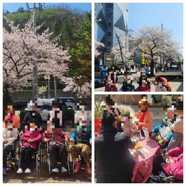 김밥과 간식을 준비하여 어르신들과 함께 벗꽃 나들이를 다녀왔습니다.